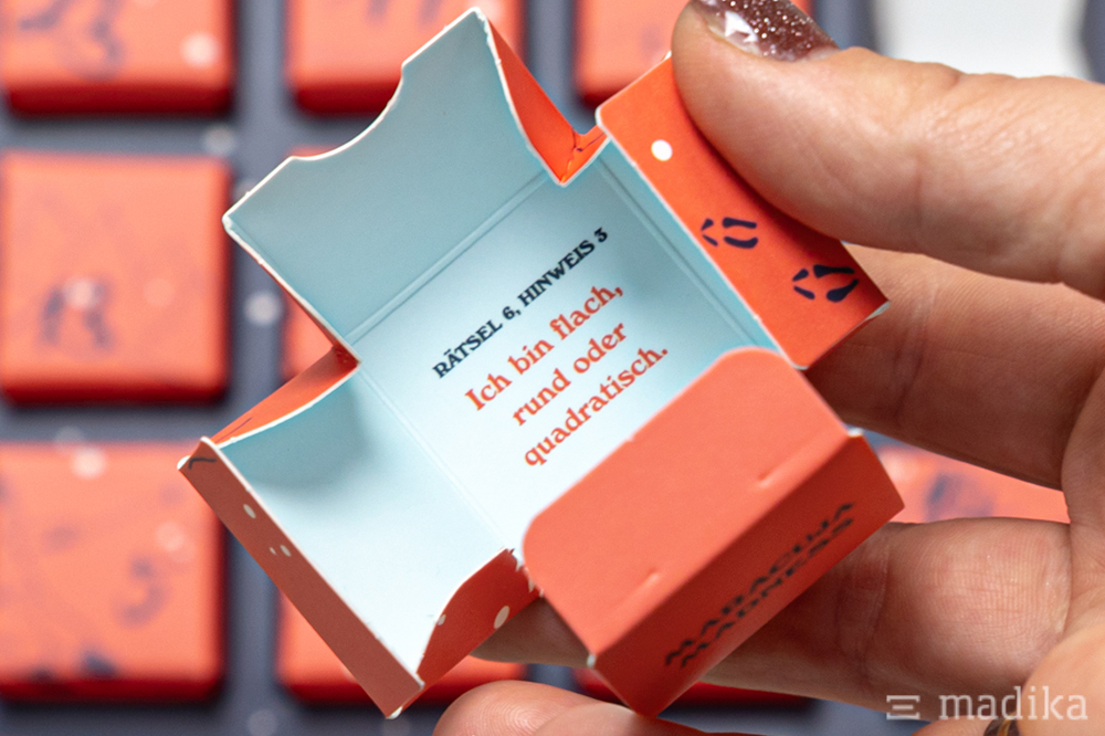 Den Adventskalender Standard können Sie bereits in einer Kleinauflage von 1 Stück bestellen. Damit eignet sich der Adventskalender auch perfekt als Weihnachtsgeschenk für Mitarbeitende oder Kolleg:innen.