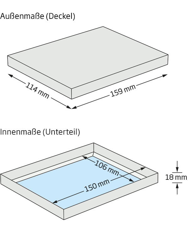 ca. 150 x 106 x 18 mm für Produkte in DIN A6