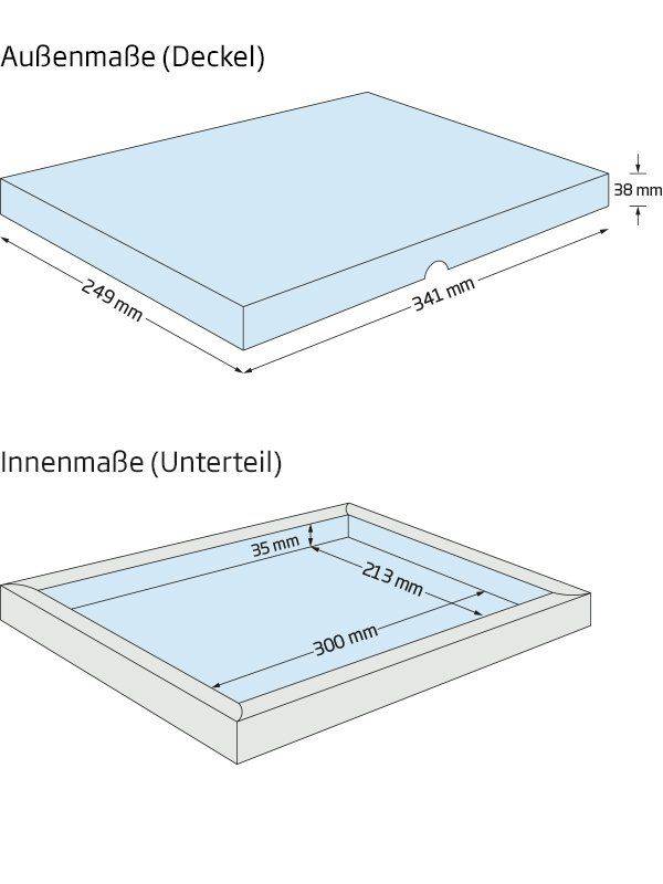 ca. 300 x 213 x 35 mm für Produkte in DIN A4