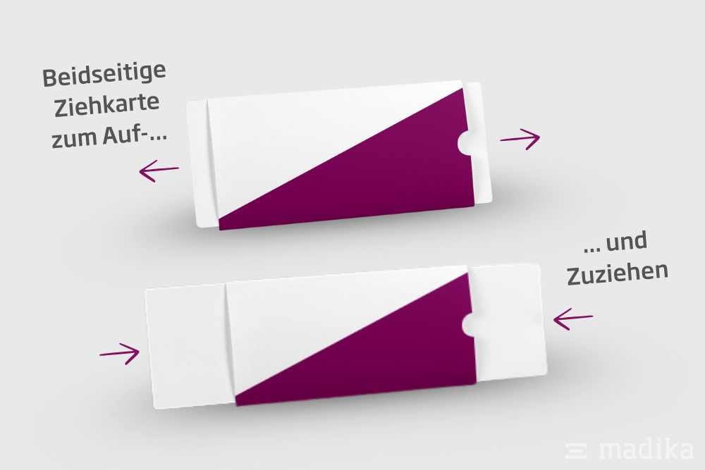Die Ziehmechanik schafft einen spielerischen Überraschungseffekt, der Emotionen auslöst und für hohe Aufmerksamkeit sorgt – ideal für wirkungsvolle Mailings, exklusive Einladungen oder kreative Produktkommunikation. Der Zieh-Effekt weckt Neugier, sorgt für Interaktion und verankert Marketingbotschaften nachhaltig im Gedächtnis.