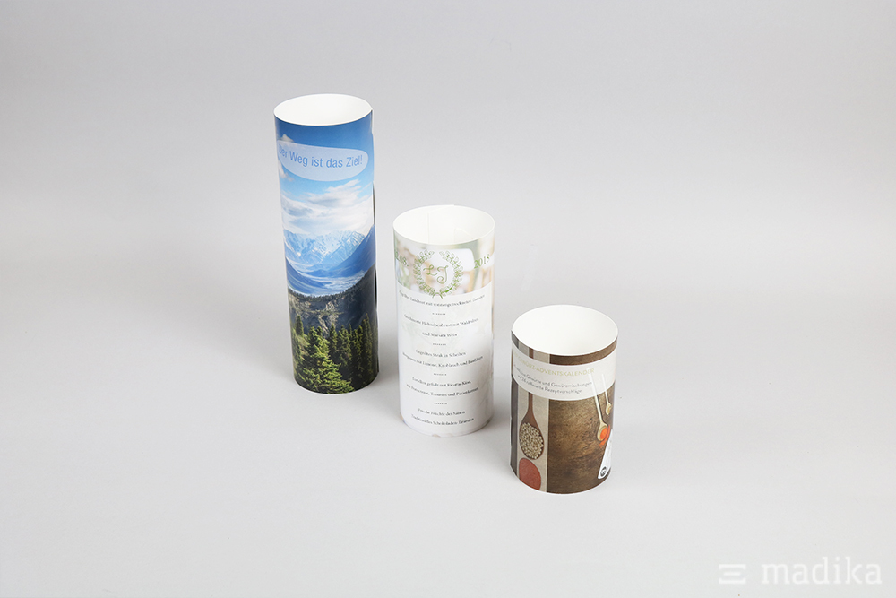 Zylinderausteller lassen gestalterisch viel Spielraum. Bei madika.de haben Sie nicht nur freie Gestaltungsmöglichkeiten, auch unterschiedliche Papiersorten machen Ihren Aufsteller zum Blickfang. Welche es gibt, erfahren Sie in unserem Blogbeitrag.